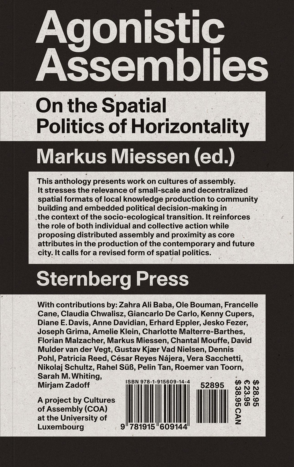 Drawing from Miessen's extensive research trajectory on Cultures of Assembly, initiated during a Harvard GSD fellowship, this anthology dives deep into the sociopolitical dimensions of urban spatial design. With a keen interest in the Kuwaiti sociocultural context, particularly the unique structure of Diwaniya, Agonistic Assemblies poses critical questions about how societies can learn from alternative models of physical exchange. This exploration encourages a shift towards decentralized decision-making and spatial justice, offering fresh perspectives on the creation of more solidary urban environments.