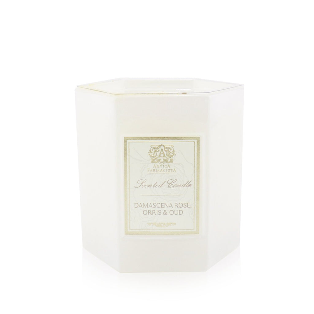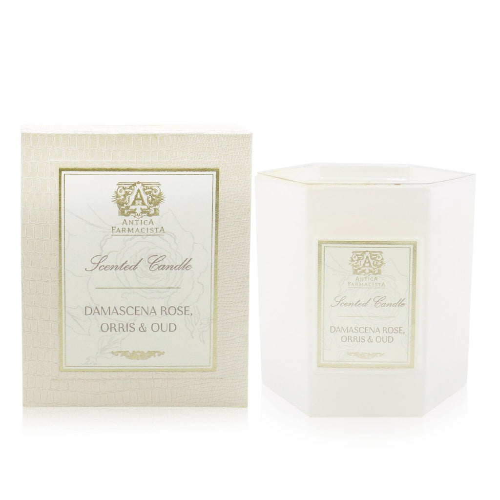 Transform your space with the Antica Farmacista Candle - Damascena Rose, Orris & Oud (255g/9oz). This exquisite candle features a captivating hexagonal design and a luxurious soy-paraffin wax blend, providing an impressive 60 hours of beautifully-scented illumination. Indulge in a complex floral fragrance that elevates any ambiance, starting with vibrant top notes of Amalfi lemon, dewy apricot, and rhubarb, seamlessly transitioning into the enchanting middle notes of orris root, violet, Damascus rose, and Moroccan jasmine. The warmth of the base notes, including oud, amber, warm musk, and cashmere, envelops your space, creating an inviting atmosphere. Each candle is elegantly housed in a soft white glass container, beautifully presented in a luxe hinged box that makes it perfect for gifting or personal use. Additionally, this product includes a set of Antica's signature matches to enhance your lighting experience. Perfect as a decorative accent or a thoughtful gift for special occasions, the Damascena Rose, Orris & Oud candle captures the essence of sophisticated luxury. Ignite your senses and enhance your home decor with this must-have scented candle from Antica Farmacista.