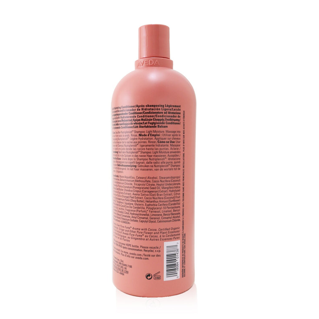 Discover Aveda Nutriplenish Conditioner - # Light Moisture (1000ml/33.8oz), your ultimate solution for achieving soft, smooth, and healthy-looking hair. This lightweight, creamy moisturizing conditioner is crafted with a 96% naturally derived formula, enriched with powerful superfoods designed specifically for dry hair. Infused with certified organic coconut oil, its low molecular weight easily penetrates the hair shaft, delivering intense hydration without weighing it down. Experience the nourishing benefits of mango butter, packed with essential fatty acids that rejuvenate and revitalize your strands. Suitable for all dry hair types, it diligently works to transform your locks into a softer, more manageable mane. Aveda Nutriplenish Conditioner is free from silicones, sulfate cleansers, parabens, gluten, mineral oil, and petrolatum, embodying the clean beauty ethos. Plus, it's vegan and cruelty-free, aligning with your ethical values. Elevate your haircare routine with this exceptional conditioner, perfect for those seeking a natural and effective solution for hydration and moisture retention. Ideal for all hair types, this conditioner ensures that your hair looks and feels its absolute best. Embrace the nourishing power of nature with Aveda, your go-to for hair health.