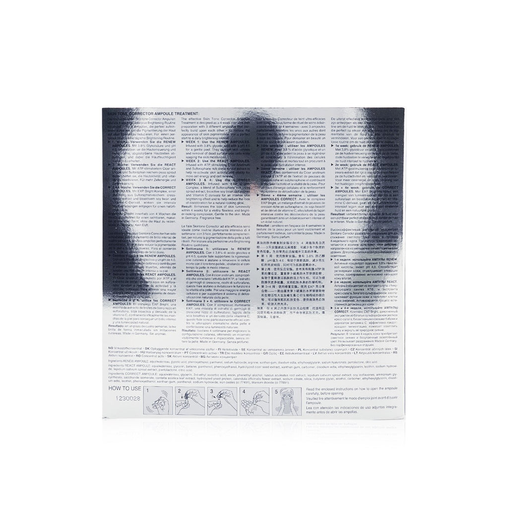 **Weeks 3 & 4: Correct Ampoules** feature the innovative EXP Bright-Complex, an advanced blend of Bioactive Soybean Isoflavones, Vitamin C Derivatives, and additional Sulforaphane-rich extracts that intensively brighten skin and diminish discoloration.