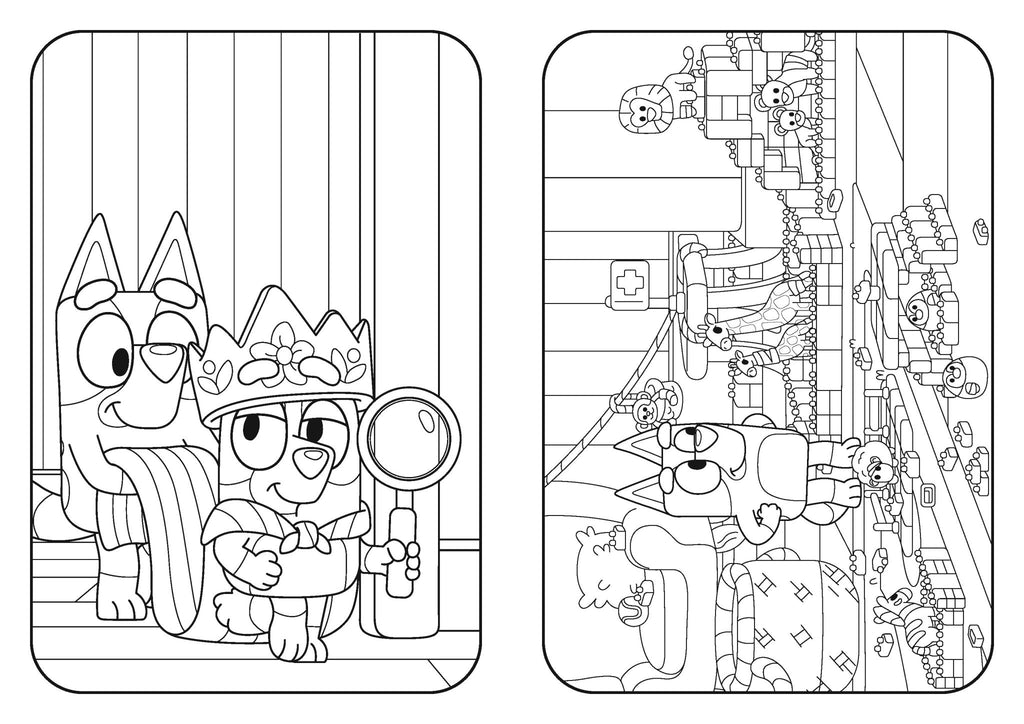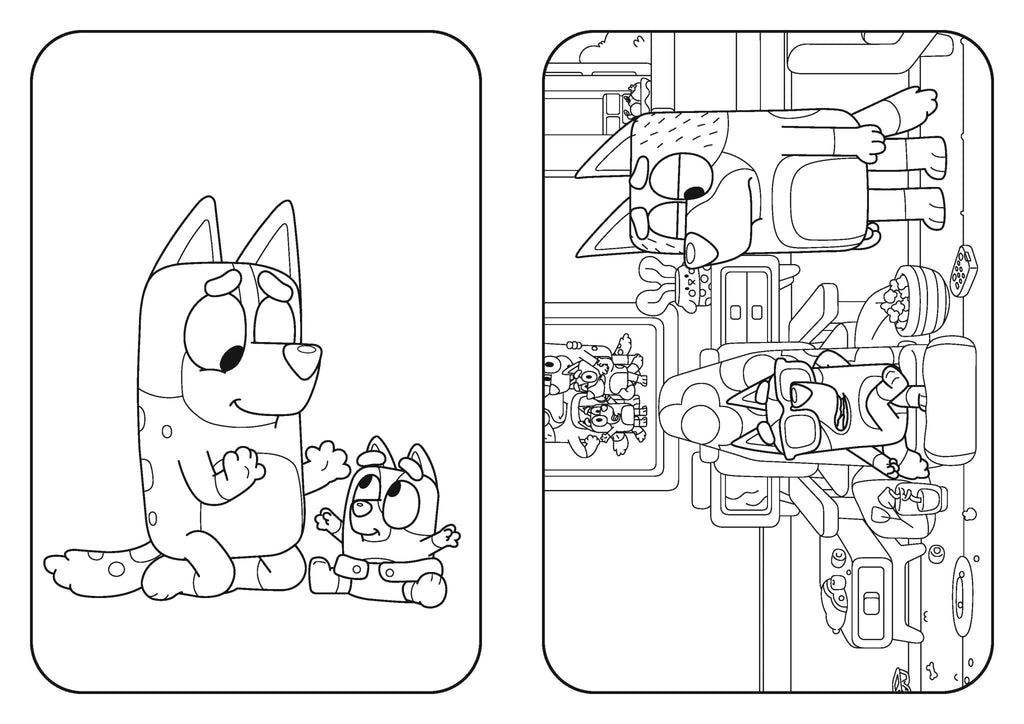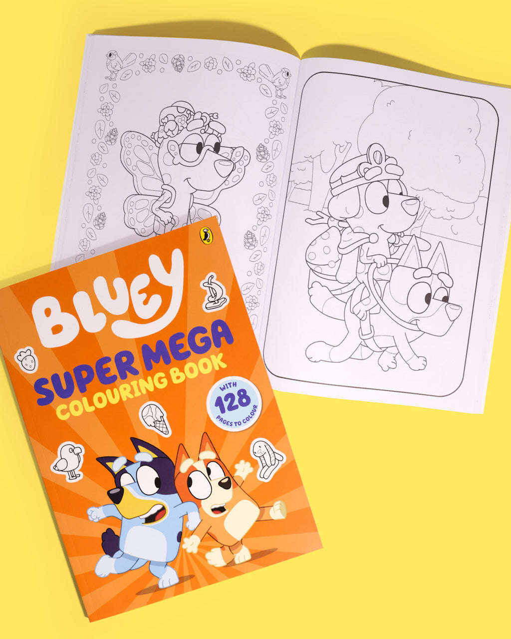 Join Bluey and Bingo on a road trip to the Big Peanut, a game of Stickbird and more in this super mega colouring book! A gorgeous colouring book for kids of all ages.