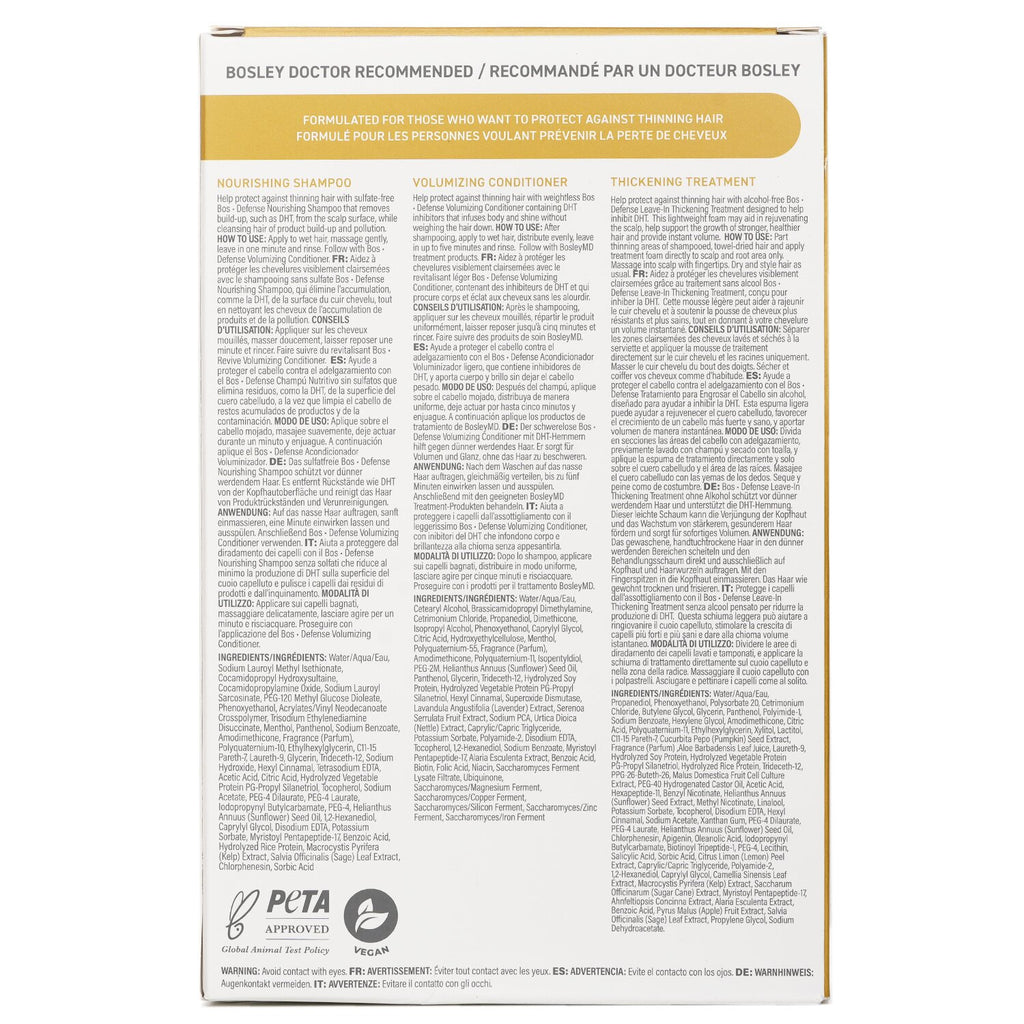 Unlock vibrant and luscious hair with the Bosley MD BosDefense Color Safe Starter Kit. This complete hair care solution features a 5.1oz Nourishing Shampoo designed to cleanse and rejuvenate color-treated hair while providing essential nutrients for healthier locks. The package also includes a 5.1oz Volumizing Conditioner that enhances fullness and body, creating a stunning look without weighing your hair down. Finish your routine with the Leave-In Treatment (3.4oz) that adds moisture and protects your color from fading. Perfect for maintaining your hair's vibrancy, the BosDefense kit is ideal for personal use or makes a thoughtful gift for anyone seeking premium hair care solutions. Experience the difference of color-safe hair care products that are gentle yet effective. Perfect for both men and women, this kit caters to diverse hair types and is designed to help manage thinning hair while preserving the rich tones of your color-treated hair. Elevate your hair game with nourishing ingredients that strengthen while providing visible volume and shine. Bosley MD is dedicated to creating products that promote healthy hair and confidence, making this starter kit a must-have addition to your beauty routine. Order now and embrace the hair you love with BosDefense!