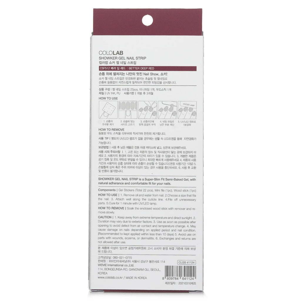 Cololab Showker Gel Nail Strip # CSF512 Better Deep Red 1pcs