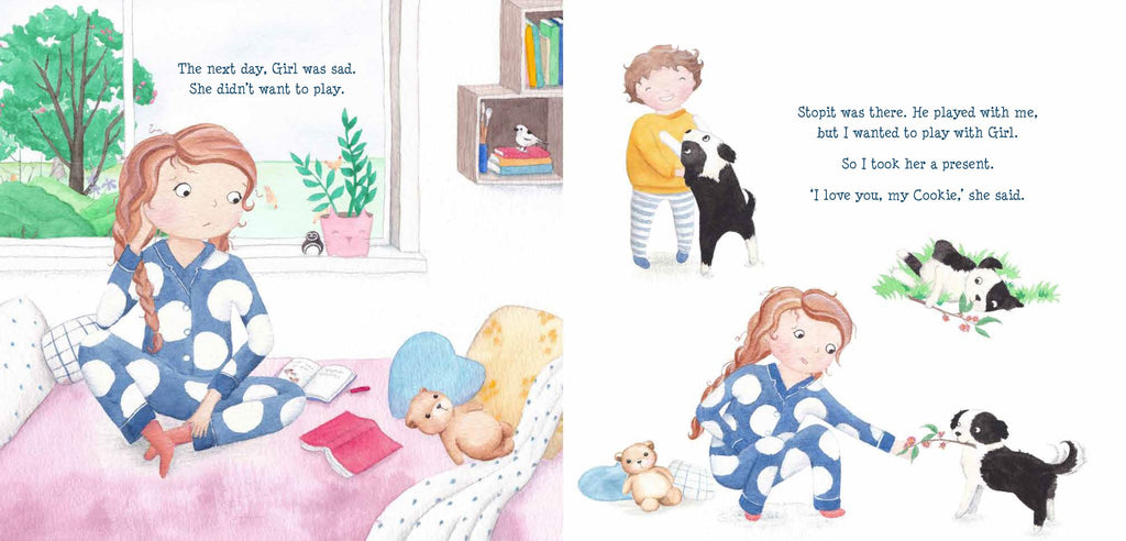 Cookie the Border Collie loves lots of things, like smelling smelly smells, chewing chewy things, going for adventures and making friends. But most of all, Cookie loves Girl. Join this inseparable pair as they play together and learn how to make each other happy, even on the days when Cookie is the only one who can make Girl smile.