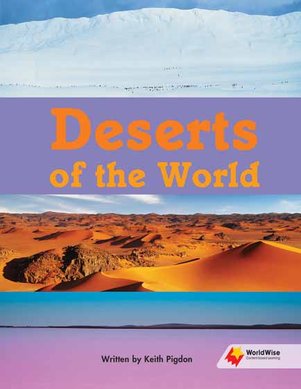 Title Information: Deserts of the World: Deserts of the World explores different types of deserts by describing a hot desert (the Sahara), a cold desert (the Gobi) and a polar desert (Antarctica). It discusses what each desert is like, and the plants and animals that are able to survive in these extreme environments.Content vocabulary:Antarctica, deserts, dry, endangered, extinct, glaciers, Gobi Desert, icebergs, mountain ranges,  polar desert, Sahara Desert, sand dunes, sandy, snow, temperatures, valleysKey concepts: Some deserts are very hot and some are very cold, but all deserts are dry with very little rainfall.  Plants and animals that live in deserts have special features that allow them to survive.Reading Strategies: VisualisingRelated resource:Lesson Plan - Deserts of the WorldSeries Information: WorldWise is a high-interest literacy program that encourages inquiry and questioning while extending knowledge in science and a range of STEM topics linked to the curriculum. This engaging program teaches reading strategies simultaneously with natural, earth and physical science concepts – reflecting the diversity of the world students live in.Students will develop strategies and skills to read informative texts across a range of text types while they learn to become informative text writers. With an assortment of text types on offer, themes and concepts are introduced and revisited across the reading stages, building on initial concepts with increasing complexity.WorldWise Lesson Plans support each Student Book, offering practical, systematic and easy-to-implement instructions. These visually appeali