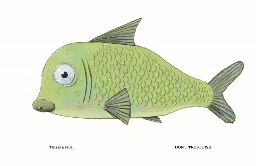 DON'T TRUST FISH! by debut picture book author Neil Sharpson and illustrated by National Book Award-winning creator Dan Santat, an absurdly laugh-out-loud picture book about the villainy of fish.