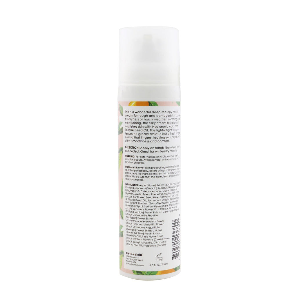 Indulge your hands with the Elvis + Elvin Hand Cream - Neroli & Mandarin, a luxurious 75ml/2.5oz deep-therapy cream meticulously crafted to rejuvenate and nourish dry skin. This expertly formulated hand cream features a silky lightweight texture that absorbs quickly, leaving no greasy residue behind. Enriched with Hyaluronic Acid and Tsubaki Seed Oil, it effectively repairs and hydrates even the roughest skin. In addition, the infusion of Honeysuckle Extract works wonders in treating and healing broken skin, offering a soothing touch to hands in need of extra care. The delightful blend of Neroli and Mandarin creates a fresh, fragrant aroma that lingers, transforming your daily hand care routine into a fragrant escape. Perfectly suited for rough and damaged skin from dryness or harsh environmental conditions, this luxurious hand cream keeps hands ultra-smooth, soothed, and comfortable. Elevate your skincare regimen and protect your hands with the revitalizing properties of Elvis + Elvin Hand Cream - Neroli & Mandarin, a must-have for anyone seeking ultra-nourished skin. Ideal for daily use, embrace the nourishing benefits this hand cream brings, and reveal the softness your hands deserve.