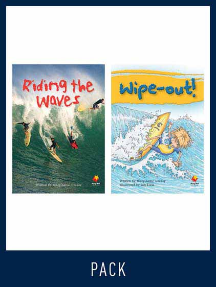 This pack includes: 6 copies of each of the following paired Student Chapter Books: Riding the Waves (ISBN:9781743201527) Synopsis: Riding the Waves discusses learning to surf, different surfing moves, where the best waves are in the world and surfing safety. Wipe-out! (ISBN:9781743201534) Synopsis: Wipe-out! is a narrative about Tom preparing for a surfing competition. After experiencing a wipe-out in the surf, Tom is scared to return to the water. 53 Lesson Plan (ISBN: 9781743201725)Digital sample pages of the resources above can be viewed atwww.flyingstarttoliteracy.com.au/online-sampleSeries information: Flying Start to Literacy is an award-winning comprehensive literacy program. It reflects best practice in literacy instruction and supports the systematic development of students’ reading strategies and skills.Each Student Book is part of connected pair, a narrative book and an informative book, both presenting the same key concepts and vocabulary. These titles have been trialled with a range of readers, including English language learners.Each pair of Student Books is supported by a Lesson Plan. These visually appealing resources are durable and easy-to-use. They integrate oral language, vocabulary development, fluency and comprehension, writing and phonics.Reading strategies, phonics and phonemic awareness and repetition of high-frequency words are all developed through this series, enhancing the reader’s fluency and comprehension. With an array of engaging titles to choose from, readers will laugh, explore and share in the adventure whilst learning and expanding their vocabulary.Flying Start t