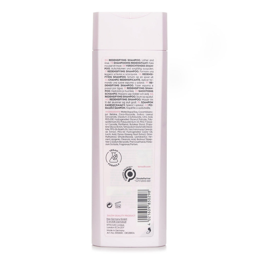 Discover the revitalizing power of Goldwell Kerasilk Redensifying Shampoo in a 250ml bottle, expertly formulated for those seeking thicker, fuller hair. This gentle cleansing shampoo is designed to rejuvenate thinning hair while providing hydration and softness. Powered by Kerasilk Silk+ Technology, it combines Biomimetic Silk, Ectoin, and T-Flavanone, stimulating the scalp to promote denser-looking hair. Enjoy improved combability and vibrant shine as you wash away dirt, sweat, oil, and product build-up. This vegan formula is not only effective but also tender on the scalp, making it ideal for everyday use. Additionally, it neutralizes hard water to prevent mineral buildup, ensuring your hair remains healthy and balanced. Infused with a delightful floral-citrus scent, this shampoo transforms your shower into a rejuvenating experience. Perfect for those with thinning or weak hair, Goldwell Kerasilk Redensifying Shampoo is more than just a hair care product; it's a step towards achieving beautiful, strong hair. Experience the effective blend of nature-inspired ingredients with Goldwell, made in Germany for quality you can trust. Elevate your hair care routine with a shampoo that truly understands the needs of thinning hair.