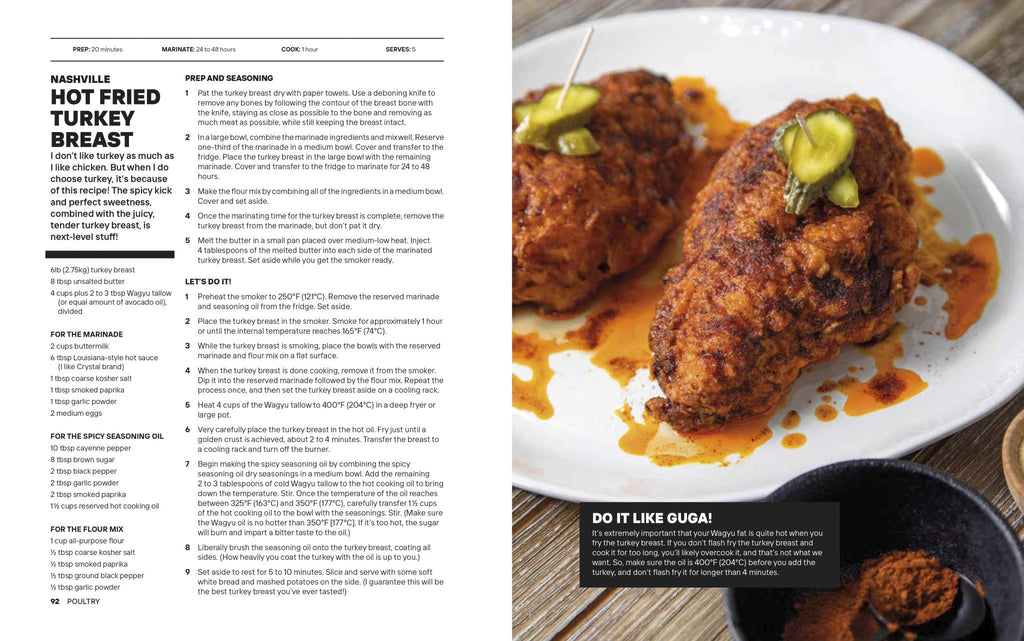 Over 90 amazing recipes that will inspire even the most seasoned BBQ fans, including recipes for beef, pork, poultry, and fish, as well as recipes for sandwiches, sides, sauces, rubs, and more! Beautiful photography throughout the book.Expert cooking tips and tricks that Guga's fans have come to love and appreciate.Simple, straightforward instructions for techniques like dry-aging, smoking, deep-frying, and more.