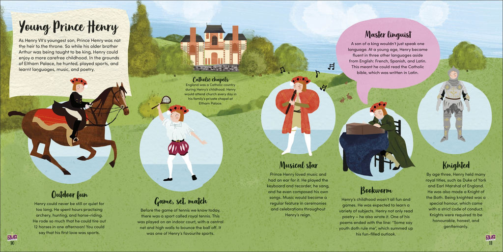 Bright, playful illustrations and simple, age-appropriate text ensure that this book is the perfect introduction to the infamous Tudor king for little historians everywhere. It will supplement your child's learning and curiosity as it reveals the secrets of a larger-than-life king from long ago.