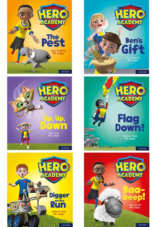 Pack information This Project X Hero Academy mixed pack includes one copy of each of the six books below. Oxford Level: 4 Letters and Sounds phase: 4 Year: 1 This ISBN includes: Hero Academy: Oxford Level 4, The Pest Hero Academy: Oxford Level 4, Ben's Gift Hero Academy: Oxford Level 4, Up, Up, Down Hero Academy: Oxford Level 4, Flag Down! Hero Academy: Oxford Level 4, Digger on the Run Hero Academy: Oxford Level 4, Baa-beep! Series information Project X Hero Academy is a new series designed to motivate young readers and turn them into reading superheroes. Hero Academy is comprised of 78 inspirational fiction books that are fully decodable and matched to Letters and Sounds phonics sequence. The fine phonic progression ensures that all children can access the series as they embed their whole-class phonic teaching. Featuresexciting character adventure with a superhero themefully decodable seriesfinely levelled, making it easy to match every child to the right bookflexible teaching support for every book includes guidance for one-to-one, independent and guided reading.Find out more about Oxford levels and how they correlate to other levelling systems here.