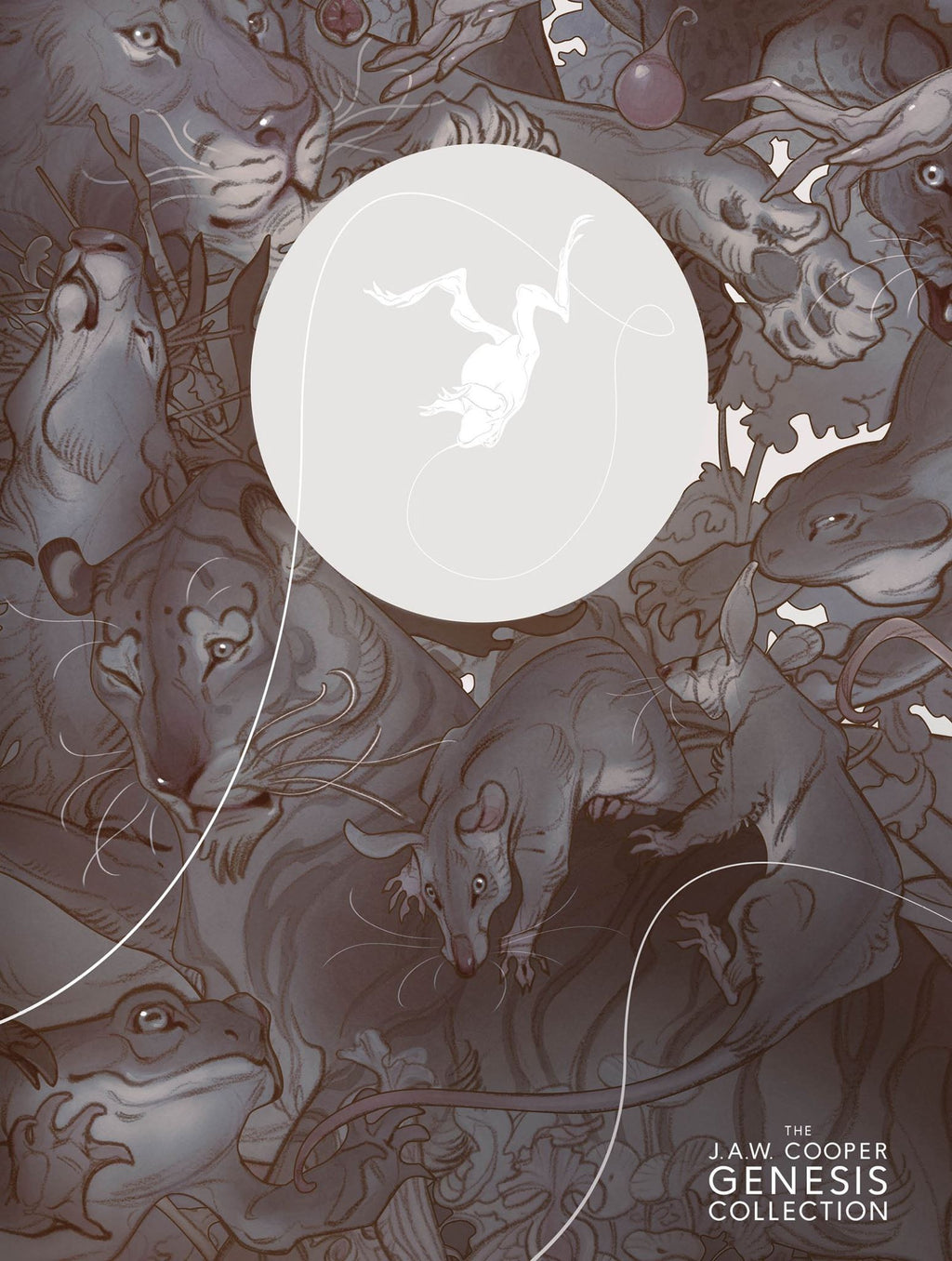 The The J.A.W. Cooper Genesis Collection compiles more than 230 works in a variety of mediums that fill this collection of art from the unique mind of J.A.W. Cooper. This book leads us on a journey into the violent, steaming innards of making art-raw, spontaneous and unfettered. Drawing on themes of the occult, the artist explores animals as allegories for the human condition-a physical projection of that which is clandestine. Cooper explores instinct and intuition as the spark of artistic creation, to delight the feral child at our core.