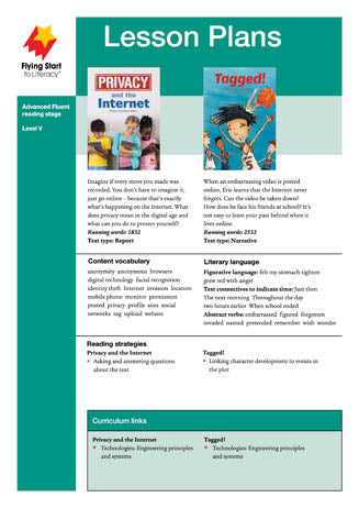 This lesson plan supports Privacy and The Internet and Tagged! Year Level:  5Reading Level: VSupporting material:  Privacy and The Internet | Tagged!Series: Flying Start to Literacy
