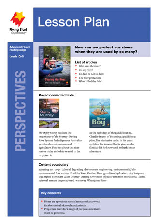 This lesson plan supports Sharing the River: What Are the Issues? Year Level:  4Reading Level: RSupporting material:  Sharing the River: What Are the Issues?Series: Flying Start to Literacy