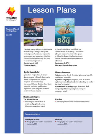 This lesson plan supports The Mighty Murray and River Boy. Year Level:Â Â 4Reading Level: RSupporting material:Â The Mighty Murray | River BoySeries: Flying Start to Literacy