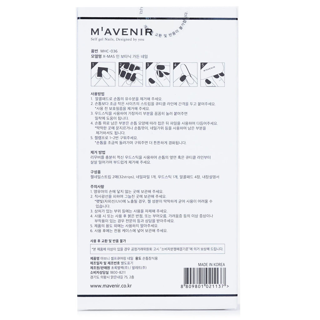 Discover the enchanting Mavenir Nail Sticker (Assorted Colour) - # X-Mas In Botanic Garden Nail 32pcs, perfect for the festive season. This premium pack offers a collection of salon-quality nail art stickers designed for all nail types and sizes. Each sticker is crafted with real liquid gel technology, ensuring a stunning and radiant finish that shines under natural light. Easy to apply, these nail stickers adhere seamlessly to your nails, preventing any gaps that could cause pinch or tangle with your hair. Even if you’re a beginner, you can achieve fabulous-looking nails in just minutes, right from the comfort of your home. Plus, they are safe, animal-friendly, and come in a variety of trendy designs and vibrant colors, making them ideal for any holiday celebration or everyday chic. With free shipping from our Auckland warehouse, there are no unexpected import charges, customs duties, or taxes. Elevate your manicure game this season with Mavenir Nail Stickers and showcase your unique style with ease. 100% New Zealand owned, we guarantee that all our products including cosmetics, skincare, and nail art are genuine and authentic, packed fresh and ready for you.