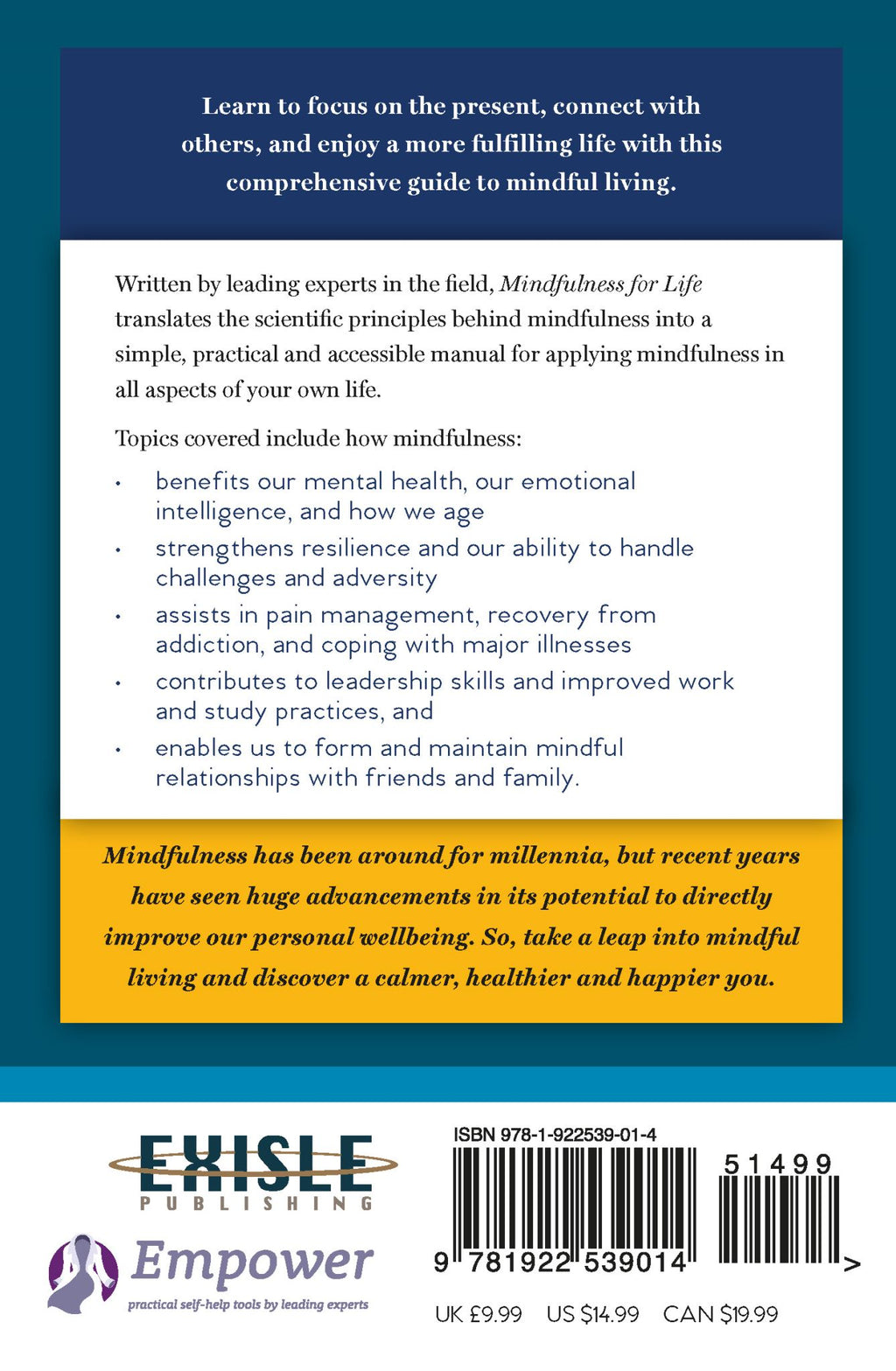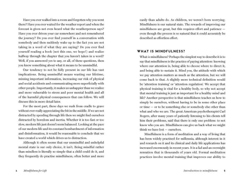 Mindfulness is a form of mental training that centres on being fully present in life; focussing on what is rather than being distracted by what isn’t. Mindfulness for Life is written by two experts in the field who bring the medical perspective of an international authority on mindfulness and the psychological perspective of a researcher. The result is a book that translates the scientific principles behind mindfulness into a simple, practical and accessible manual to applying mindfulness in your own life.