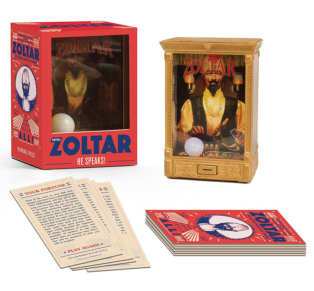 Zoltar Speaks is the famous animatronic fortune teller who is found in hundreds of locations around the world including arcades, attractions, theme parks, gift shops, and homes.