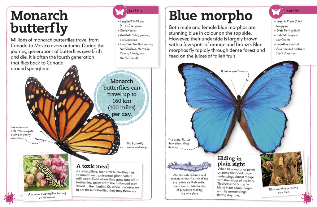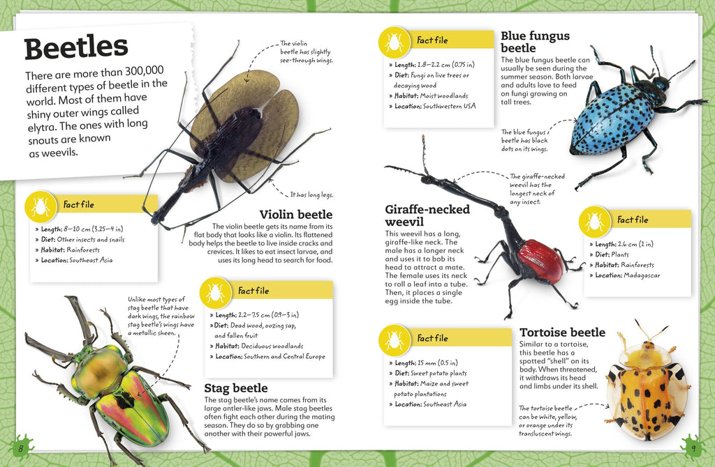 Grab your magnifying glass and head out to discover all about insects - their different types, body-structures, and behaviours. Filled with eye-catching images and bite-sized information, every young nature enthusiast will marvel at the mind-boggling facts about these adaptable creatures. The book covers the seven major insect groups and includes profiles for over 40 amazing insects, such as the stag beetle, monarch butterfly, and honey bee.