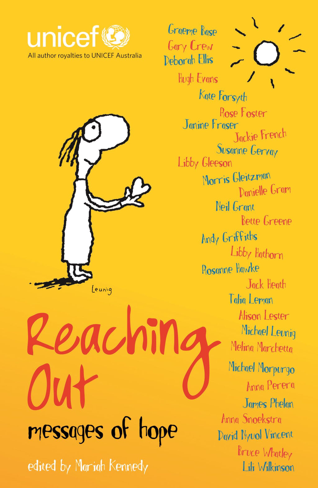 Fifteen-year-old Mariah Kennedy is passionate about fighting for social justice. As the UNICEF Australia Young Ambassador, Mariah created REACHING OUT as a fundraising project and all author royalties will be donated to UNICEF. Heartfelt and inspiring, this book contains stories, poems and illustrations that have been donated by some of the most world's renowned and respected authors and illustrators, including Graeme Base, Jackie French, Michael Leunig, Bruce Whatley, Michael Morpurgo, Andy Griffiths, Anna Perera, Libby Gleeson, Melina Marchetta, Alison Lester, Morris Gleitzman and many more. Ages: 10-14