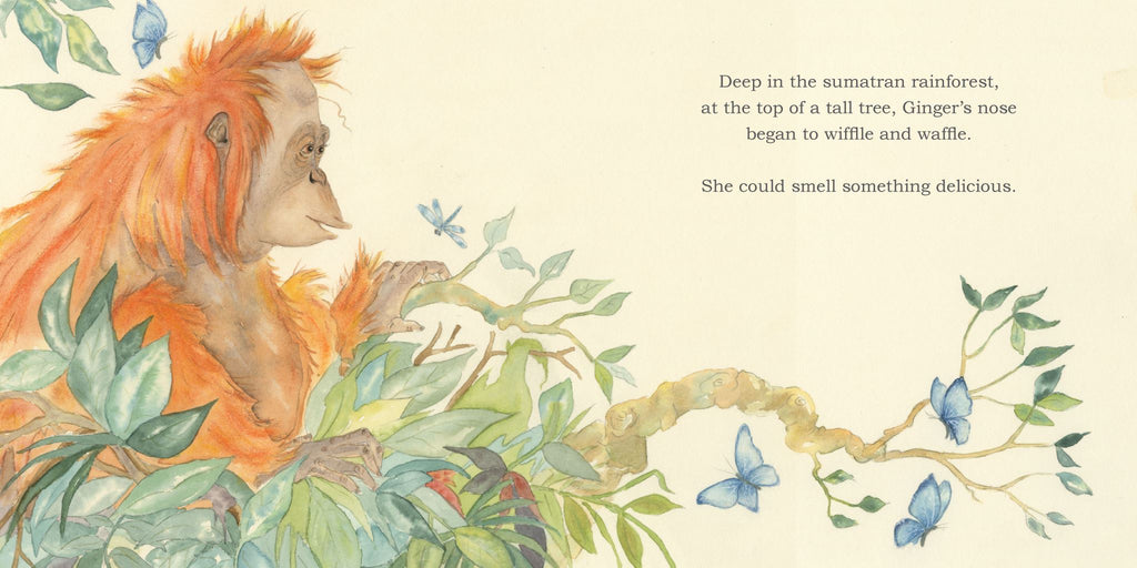 When human encroachment threatens the rainforest with fire and Ginger’s life is in danger, a trusted old friend comes to her rescue. A sensitive story which reveals the plight of orangutans and other wildlife as they fight for survival in their ever-diminishing rainforest habitat, which is directly due to the activities of human development and the need for land to grow palm and other crops.