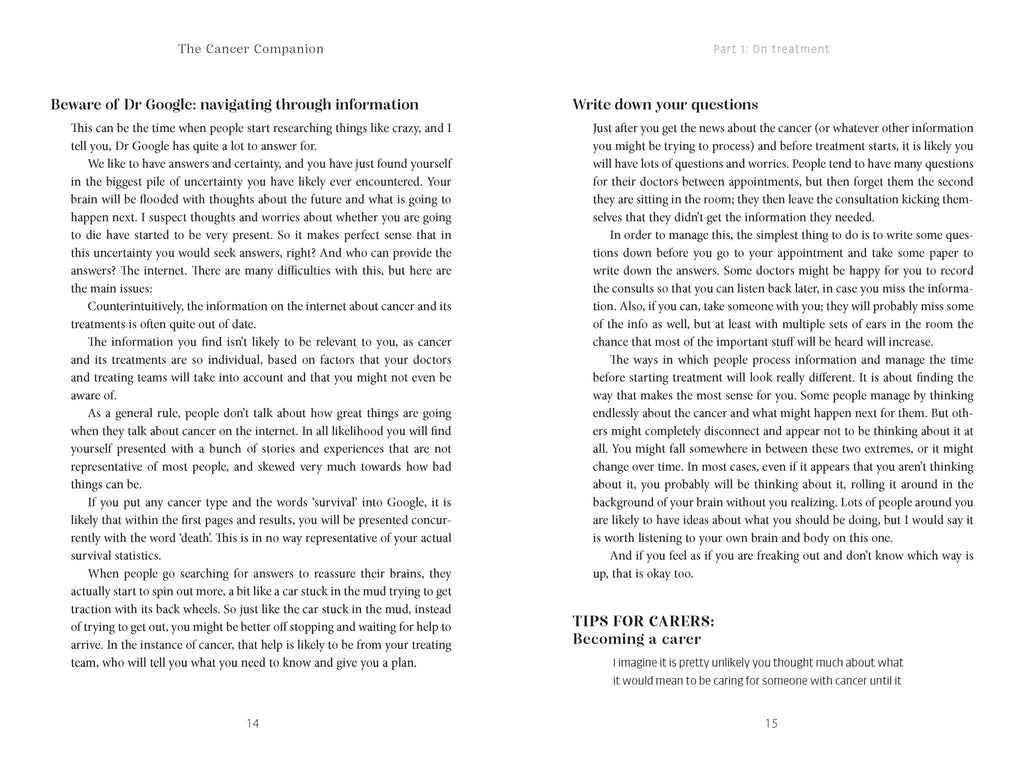 A cancer diagnosis has more than physical effects; it can cause a torrent of unexpected, unfamiliar emotions felt by both the patient and those who care for them. The Cancer Companion is a compassionate, down-to-earth guide for those navigating these difficult and complex emotions. It takes psychological interventions shown to be appropriate and helpful in the management of cancer-related distress and provides an effective framework for patients and their loved ones to be able to apply these interventions in their own lives.