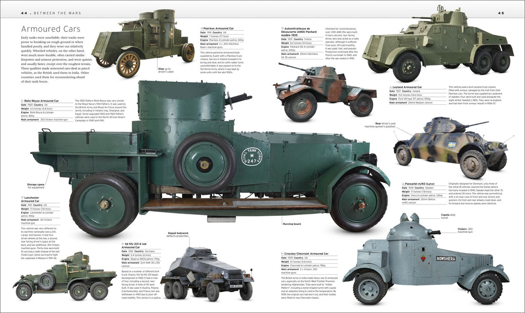 This comprehensive volume takes you through the most exciting story in recent military history with the development of heavy artillery, anti-tank weaponry, and the men - such as Sir William Tritton and Mikail Koshkin - who designed these awe-inspiring beasts. It shows each key model in stunning detail, highlighting elements such as their armour and weaponry, and much more besides.