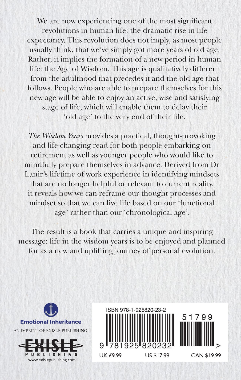 We are now experiencing one of the most significant — but not yet fully understood — revolutions in human life: the dramatic rise in life expectancy. This revolution does not imply, as most people usually think, that we’ve simply got more years of old age. Rather, it implies the formation of a new period in human life: the Age of Wisdom. This age is qualitatively different from the adulthood that precedes it and the old age that follows. People who are able to prepare themselves for this new age will be able to enjoy an active, wise and satisfying stage of life, which will enable them to delay their ‘old age’ to the very end of their life. The Wisdom Years provides a practical, thought-provoking and life-changing read for both people embarking on retirement as well as younger people who would like to mindfully prepare themselves in advance. Derived from Dr Lanir’s lifetime of work experience in identifying mindsets that are no longer helpful or relevant to current reality, it reveals how we can reframe our thought processes and mind set so that we can live life based on our ‘functional age’ rather than our ‘chronological age’. The result is a book that carries a unique and inspiring message: life after retirement is to be enjoyed as a new, exciting and uplifting journey of personal evolution.