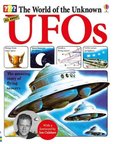 From flying saucers and supersonic spaceships, to alien encounters and famous fakes, this classic title traces UFOs throughout history, and is the perfect companion for any space enthusiast. First published in 1977, this is the second book from Usborne's beloved World of the Unknown series to be brought back by popular demand. With a brand new foreword by impressionist, actor and comedian Jon Culshaw, otherwise the book remains unchanged from the original.For centuries people have been seeing strange lights and shapes in the sky, and weird creatures walking the Earth, but in recent years there seem to have been more of these 'objects' than ever. Researchers have tried to find out more about them, but while many have been explained, there still remain a few which defy identification.World of the Unknown UFOs investigates UFO case stories. It tells you what is known of the flying saucer mystery and suggests some possible solutions to it. Where do UFOs come from? Are they spaceships guided by creatures from other worlds? Are they figments of people's imaginations?You can find answers to some of these questions in this book and learn how to make your own UFO model, how to fake a UFO photograph, and even how to go hunting for real UFOs.