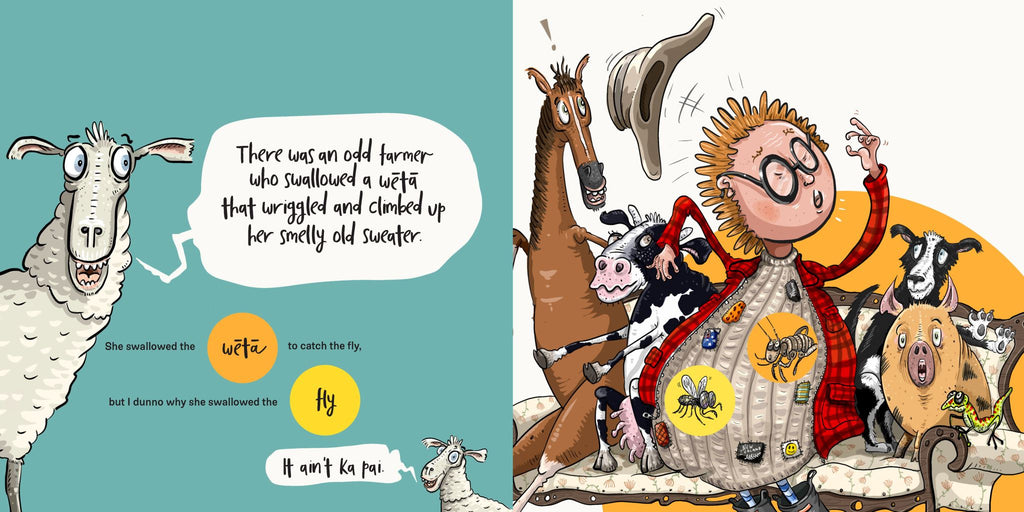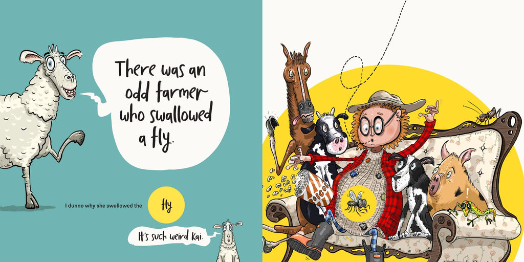 Peek through the holes in the pages to see what the odd farmer swallows in this favourite nursery rhyme with a pitch-perfect Kiwi twist!