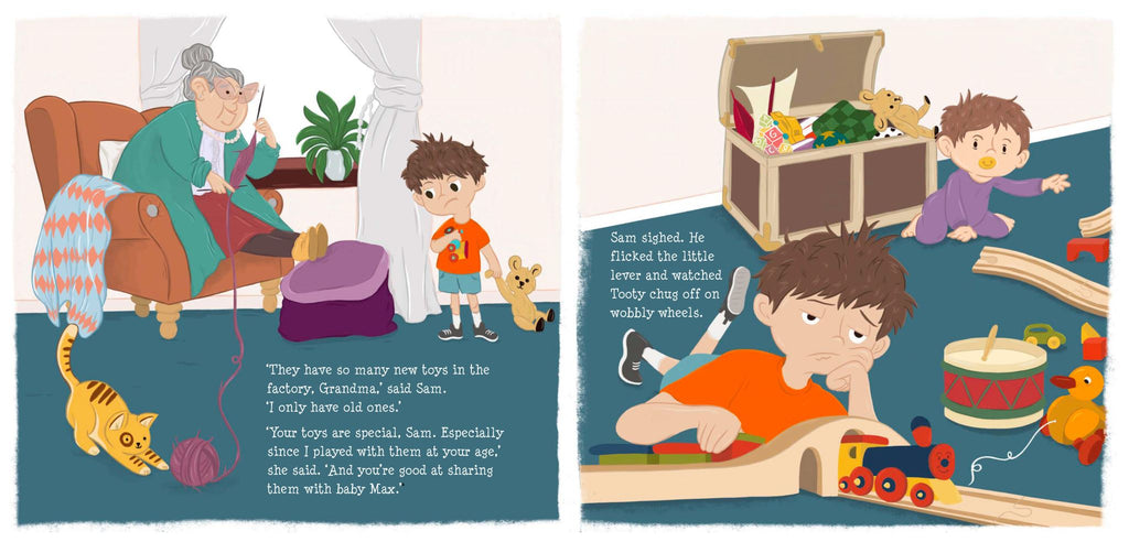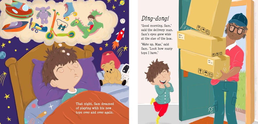 Introducing 'Toy Mountain', an enchanting picture book that tells the story of 5-year-old Sam, who discovers the importance of sustainability and valuing our belongings. In this captivating tale, Sam becomes a toy tester at the Tiny Hands Toy factory, where he encounters an overwhelming number of shiny, new toys. However, as he tosses aside Grandma's cherished hand-me-downs in favor of flashy toys, he quickly learns that these colorful creations come with their own problems. Filled with whimsical illustrations, 'Toy Mountain' artfully demonstrates the environmental impact of consumer culture and the ever-growing mountain of discarded toys. This story encourages both children and adults to rethink their toy purchases and cherish what they already own. With a poignant message about reducing waste and taking responsibility for our environment, 'Toy Mountain' is not just a delightful read but also an educational tool for young minds to understand sustainability. Perfect for bedtime stories or classroom discussions about environmental responsibility, this picture book is a must-have addition to any child's bookshelf. Inspire the next generation to value their toys and recognize the importance of sustainability with 'Toy Mountain'—the perfect gift for birthdays, holidays, and everyday learning.