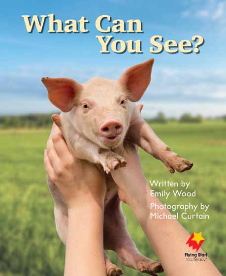 About this text:Title:What Can You See? Synopsis:  The children in What Can You See? Introduce us to a range of cute animal babies.  Year level(s): F Reading level: 1 Text type: Recount Curriculum link: Biological sciences  Living things Content vocabulary: puppy duckling chick piglet lamb kitten foal High frequency words: I can see a Key concepts: Many people believe baby animals are cute. Many animal babies have different names to the adult animals Reading strategies: Locating the first and last word on the page Phonics: Hearing and pronouncing the /l/ sound as in lamb. Hearing and pronouncing the /p/ sound as in puppy Paired text: Animal Babies Supporting material: Vocab Starter - Baby Animals. Lesson Plan - What can You See? / Animal Babies Series: Flying Start to Literacy Alternative purchasing options: This title is available in one of several value packs. Speak to your Oxford Education consultant today to learn more www.oup.com.au/contact Digital sample pages: can be viewed at www.flyingstarttoliteracy.com.au/online-sample Series information: Flying Start to Literacy is an award-winning comprehensive literacy program. It reflects best practice in literacy instruction and supports the systematic development of students’ reading strategies and skills. Each Student Book is part of connected pair, a narrative book and an informative book, both presenting the same key concepts and vocabulary. These titles have been trialled with a range of readers, including English language learners.Each pair of Student Books is supported by a Lesson Plan. These visually appealing resources are dur