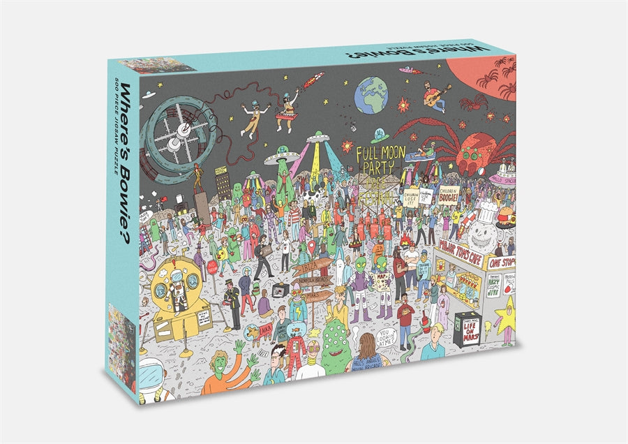 Discover the captivating world of 'Where's Bowie?' - a vibrant 500-piece jigsaw puzzle that transforms puzzling into an interactive adventure! In this delightful search-and-find puzzle, experience the transformative artistry of David Bowie as you embark on a quest to spot him in his numerous iconic personas. Perfect for fans of all ages, this puzzle not only entertains but also challenges the keenest eyes, making it an exciting gift for Bowie enthusiasts and puzzle lovers alike. Each piece reveals a colorful homage infused with references from Bowie's illustrious career, offering a nostalgic trip down memory lane. Whether you're a casual fan or a Bowie aficionado, 'Where's Bowie?' promises to enhance your puzzling experience with its intricate design and clever nods to the music legend. Channel the energy of your favorite Bowie hits as you piece together this exquisite puzzle and immerse yourself in a world where art meets music. Ideal for solo sessions or spirited gatherings, add 'Where's Bowie?' to your collection and elevate your game nights with a touch of rock 'n' roll flair. Get ready to embark on the ultimate search for Bowie—your puzzle-solving adventure awaits!