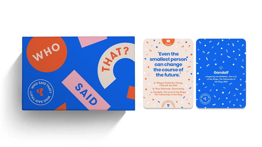 Introducing 'Who Said That?', the ultimate multiple-choice card game for pop culture enthusiasts and history buffs alike. This engaging game features 430 high-quality cards, each one sparking lively debates and laughter as players try to match quotes with the iconic figures who said them. Whether it’s a witty remark from a beloved celebrity, a powerful statement from a politician, or an insightful comment from a famous author, this game will challenge your general knowledge and ignite your passion for trivia. Ideal for parties, family game nights, or casual hangouts, 'Who Said That?' is perfect for 2 to an infinite number of players, ensuring endless fun. The gameplay is simple yet addictive: draw a card, read the quote, and guess who said it. For example, if the card reads “The way to get started is to quit talking and begin doing,” would you choose A) Walt Disney, B) Barack Obama, or C) Steve Jobs? With each correct answer, players earn points, creating an exhilarating competition until one player emerges victorious. Dive into a world of fascinating quotes and unexpected knowledge as you enjoy 'Who Said That?' This game not only entertains but also educates, making it a must-have addition to your collection of board games. Perfect for trivia nights or as a gift for friends and family, this card game encourages learning while having a blast. Explore the quotes that shaped history and pop culture, and see who amongst your friends knows the most. Get ready for laughter, learning, and unforgettable memories with ‘Who Said That?’!