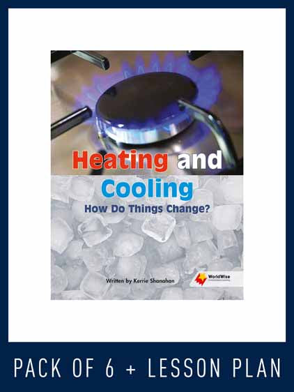 This pack includes six copies of the student book (9781760868642 – as described below) and a lesson plan (9781760868888).Title Information:Heating and Cooling How Do Things Change?: Heating and Cooling: How Do Things Change? explains what happens to various foods and drinks when they are heated or cooled. It investigates changes to these foods and drinks; ones that can never be undone and ones that can be reversed.Content vocabulary: boil, changes, colour, cooked, cool down, cooled, cooling, freezer, frozen, fry, heated, heating, investigate, reversed, shape, smell, taste, temperature, toasted, undone, warm upKey concepts:Heating and cooling foods and drinks can cause them to change. Some changes to foods and drinks can never be undone. Some changes to foods and drinks can be reversed.Reading Strategies: Identifying the pattern in a bookRelated resource: Lesson Plan - Heating and Cooling How Do Things Change?Series Information: WorldWise is a high-interest literacy program that encourages inquiry and questioning while extending knowledge in science and a range of STEM topics linked to the curriculum. This engaging program teaches reading strategies simultaneously with natural, earth and physical science concepts – reflecting the diversity of the world students live in.Students will develop strategies and skills to read informative texts across a range of text types while they learn to become informative text writers. With an assortment of text types on offer, themes and concepts are introduced and revisited across the reading stages, building on initial concepts with increasing complexity.WorldWise Lesson Plans support each Student B