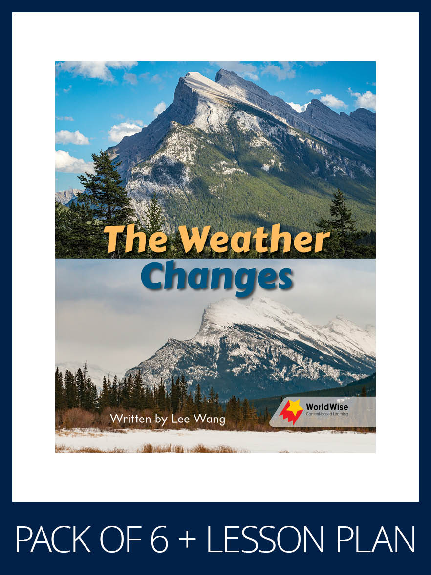 This pack includes six copies of the student book (9781761072222 – as described below) and a lesson plan (9781761072666).Title Information:­The Weather Changes describes the seasonal changes that winter and summer bring to the landscape. The book shows snow and ice in the winter, and new plant growth in the summer.Content vocabulary: lake, mountain, park, river, summer, water, winterKey concepts:As the weather changes the land changes too.Reading Strategies: Matching photographs to textRelated resource: WW LPL1 Cleaning UpSeries Information:WorldWise is a high-interest literacy program that encourages inquiry and questioning while extending knowledge in science and a range of STEM topics linked to the curriculum. This engaging program teaches reading strategies simultaneously with natural, earth and physical science concepts – reflecting the diversity of the world students live in.Students will develop strategies and skills to read informative texts across a range of text types while they learn to become informative text writers. With an assortment of text types on offer, themes and concepts are introduced and revisited across the reading stages, building on initial concepts with increasing complexity.WorldWise Lesson Plans support each Student Book, offering practical, systematic and easy-to-implement instructions. These visually appealing resources integrate oral language, vocabulary development, fluency and comprehension, writing and phonics.WorldWise Investigations is a web-based tool that provides extension activities for titles in the program. It encourages exploration of content linked to curri