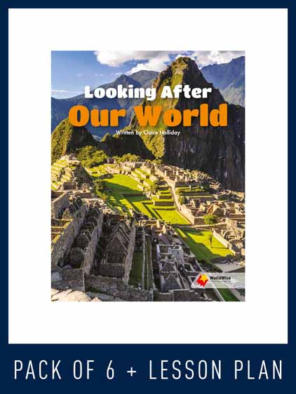 This pack includes six copies of the student book (9781760861100 – as described below) and a lesson plan (9781760861643).Title Information:Looking After Our World: Looking After Our World explores some spectacular places. It focuses on UNESCO world heritage sites and explores why they are listed in light of their unique natural and/or cultural features, and what is being done to ensure they remain for future generations.Content vocabulary: artefacts, cistern, customs, diverse, extinct, granite, groves, heritage, modernise, monument, naturalist, preserve, ranger, sacred, savanna, submarine, terracotta, unique, warriors, wildernessKey concepts:Consider how and why places are chosen to become world heritage sites Understand that some places have unique cultural and/or natural features and are important sites to many people Understand why world heritage sites need to be protectedReading Strategies: Synthesising visual and written informationRelated resource: Lesson Plan - Looking After Our WorldSeries Information: WorldWise is a high-interest literacy program that encourages inquiry and questioning while extending knowledge in science and a range of STEM topics linked to the curriculum. This engaging program teaches reading strategies simultaneously with natural, earth and physical science concepts – reflecting the diversity of the world students live in.Students will develop strategies and skills to read informative texts across a range of text types while they learn to become informative text writers. With an assortment of text types on offer, themes and concepts are introduced and revis