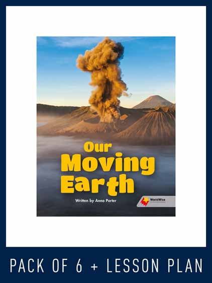 This pack includes six copies of the student book (9781760861353 – as described below) and a lesson plan (9781760861896).Title Information:Our Moving Earth: Our Moving Earth explains how the movement of the earth’s crust can cause natural disasters such as earthquakes, tsunamis and volcanoes, and it discusses the impact that these events can have. The book also explores how the movement of the earth constructs and changes landforms.Content vocabulary: aftershock, ancient, atmosphere, avalanche, calderas, continents, core, crust, dormant, earthquake, earthquake engineer, eruption, fault lines, geologist, geothermal, geyser, hazards, lava, magma, magnitude, mantle, plates, Richter scale, tremors, tsunamiKey concepts:Movement of the earth’s crust can change the earth’s surface and create new landformsMovement of the earth’s crust can cause natural hazards that have a great impact on peopleCertain parts of the world are more susceptible to natural disasters than othersReading Strategies: Interpreting graphic devicesRelated resource: Lesson Plan - Our Moving EarthSeries Information: WorldWise is a high-interest literacy program that encourages inquiry and questioning while extending knowledge in science and a range of STEM topics linked to the curriculum. This engaging program teaches reading strategies simultaneously with natural, earth and physical science concepts – reflecting the diversity of the world students live in.Students will develop strategies and skills to read informative texts across a range of text types while they learn to become informative text writers. With an assortment of text types on offer, th